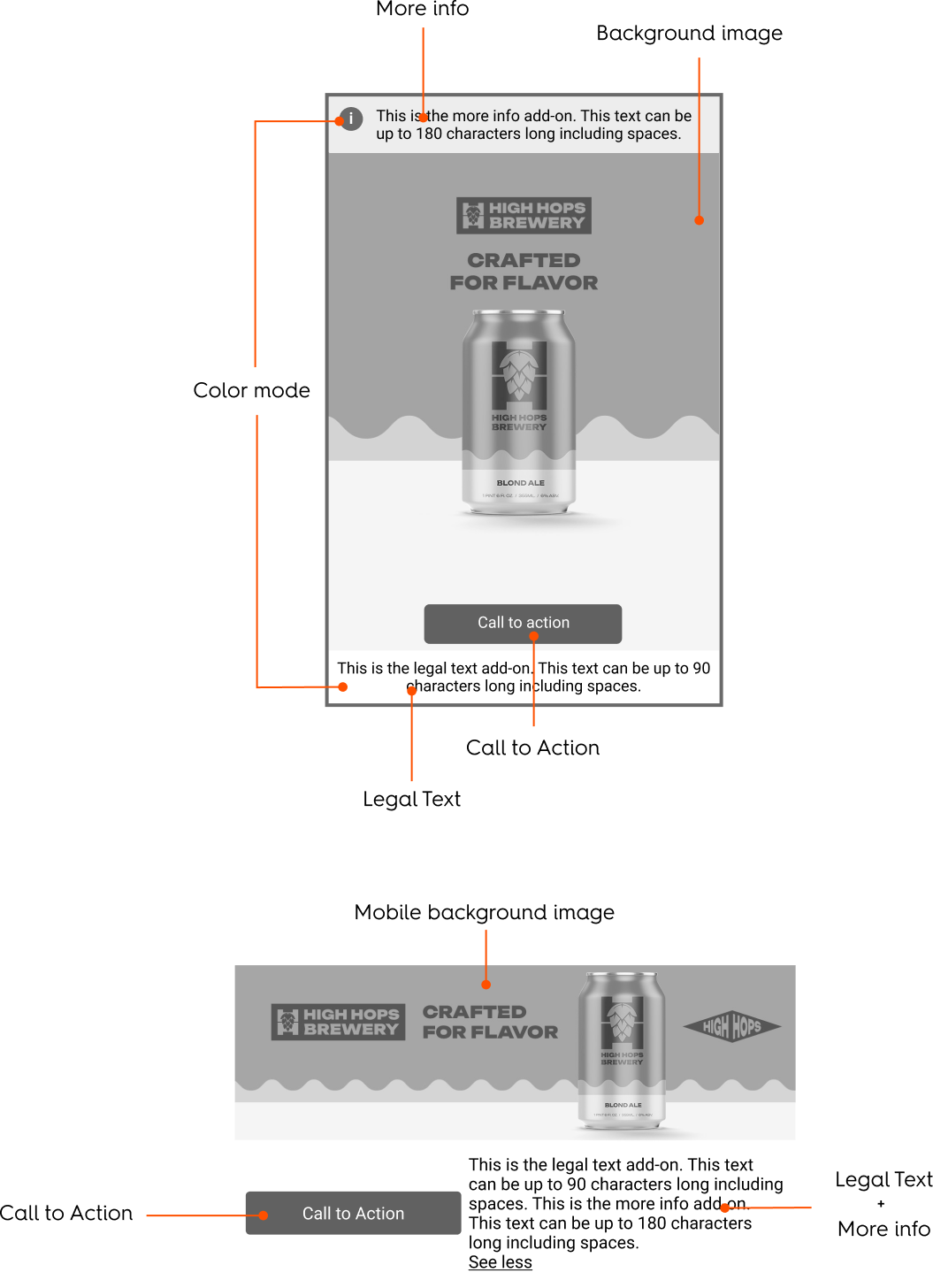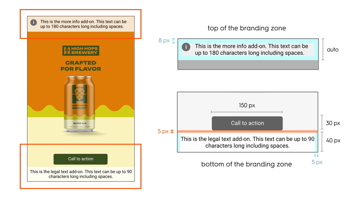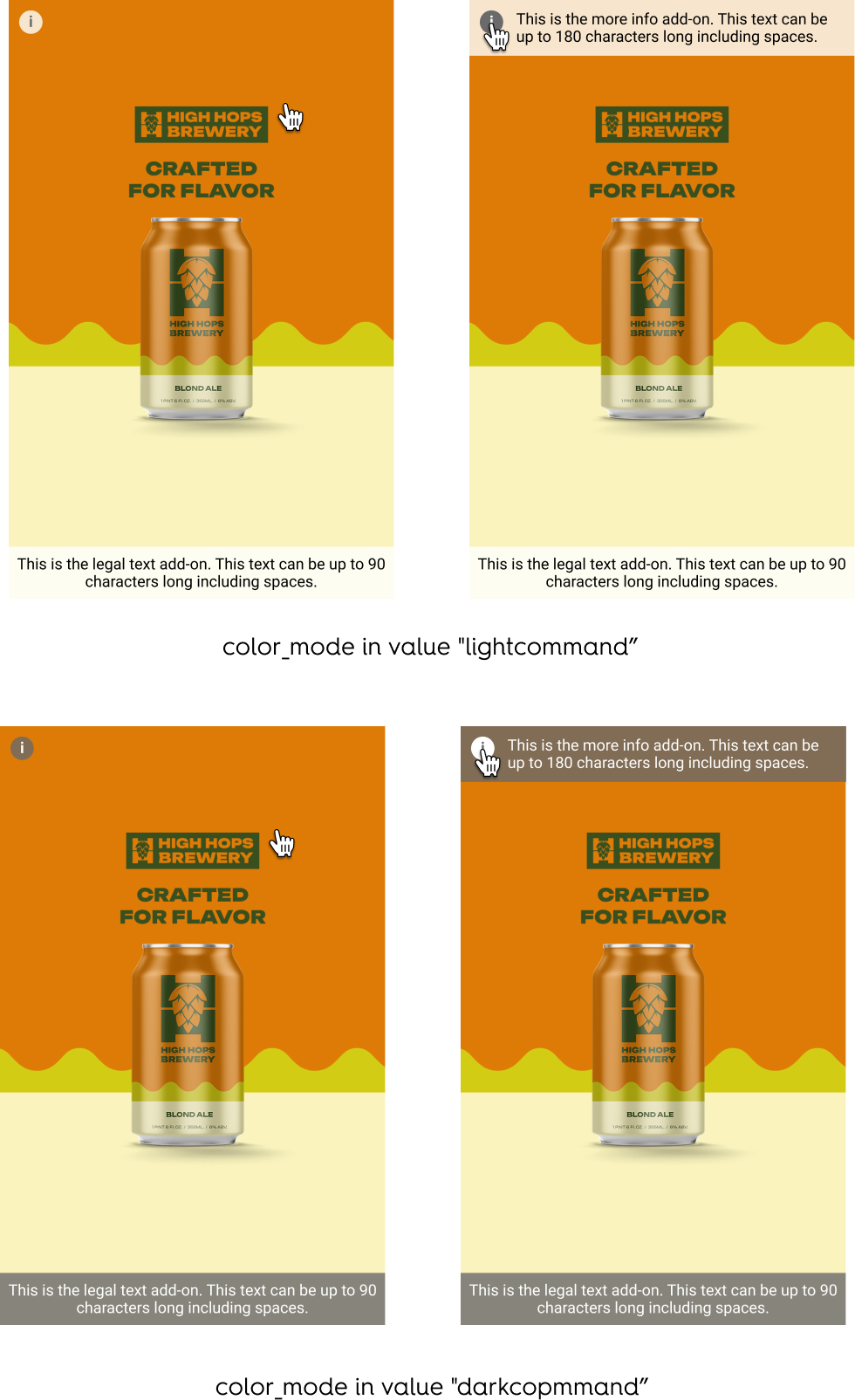 The advertiser can choose between two preset color modes to ensure the best contrast between legals and the branding zone. Options appear while hovering over the Branding Zone.