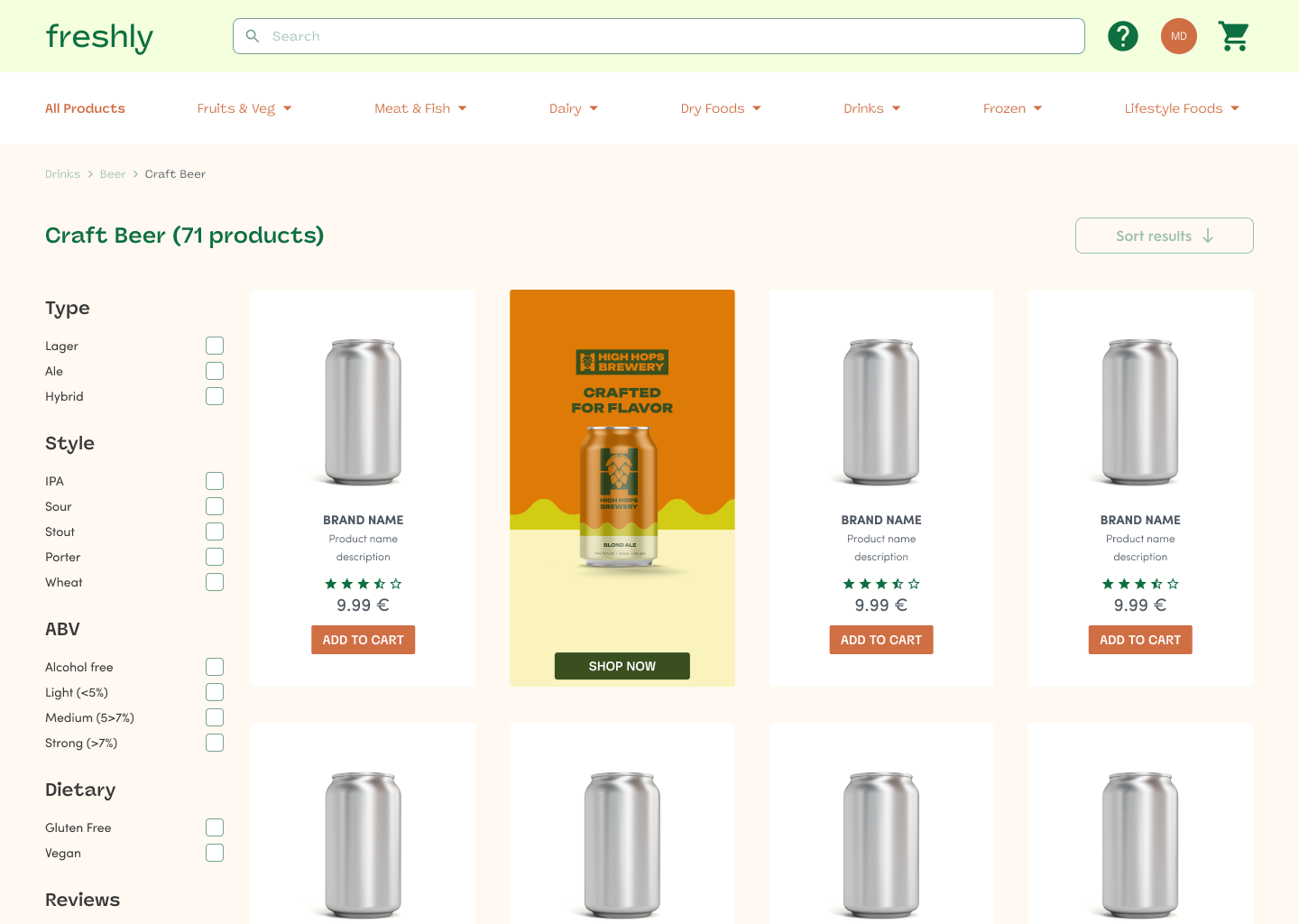 Font: Roboto Regular 12px and 10px on mobile in grid.