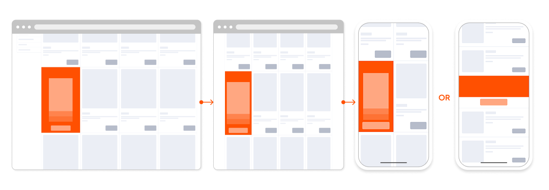 - if in list view or single column grid, format will change to the Alternative Mobile Layout.