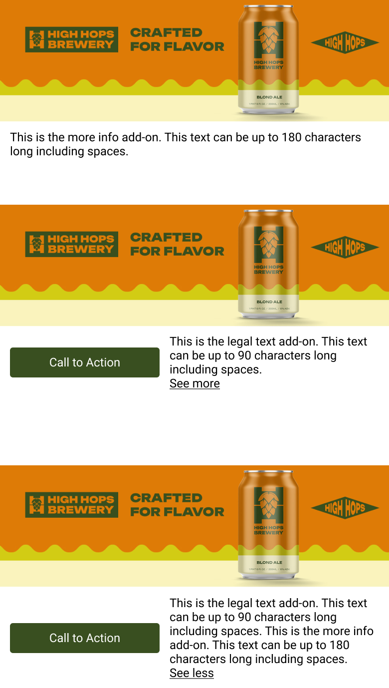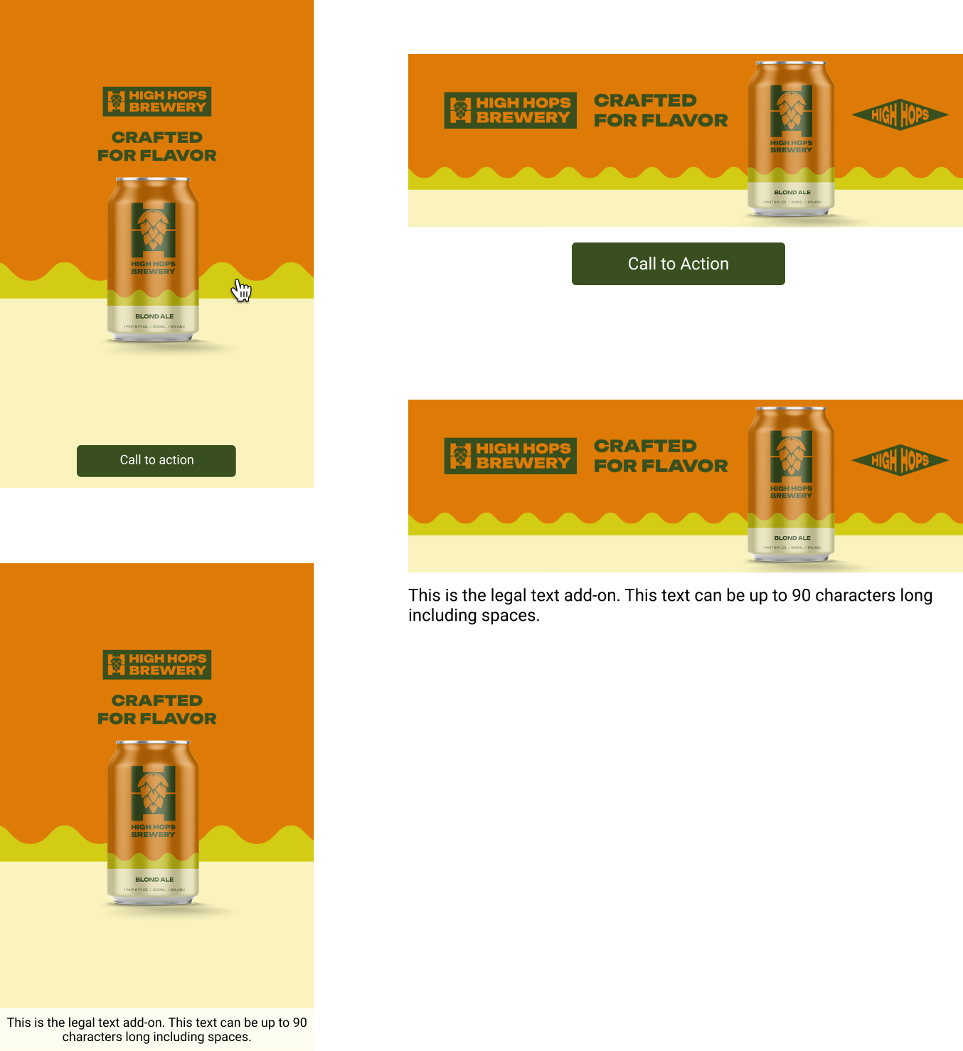 CTA and Legal Text examples for the Branding Display Grid Solo format
