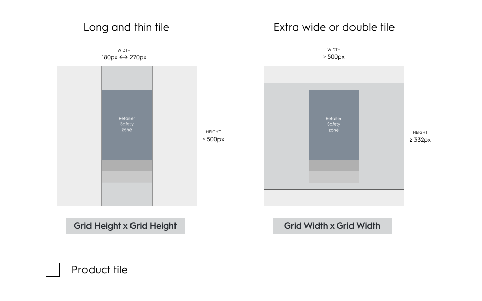 Retailer Safety zone in-grid - Dimensions for Mobile, Regular and Large grid tiles