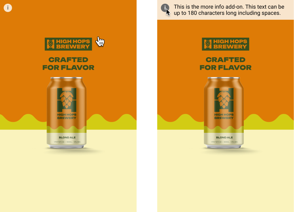 - When hovering the (i) icon, the "More info" text is displayed on top of the branding zone.