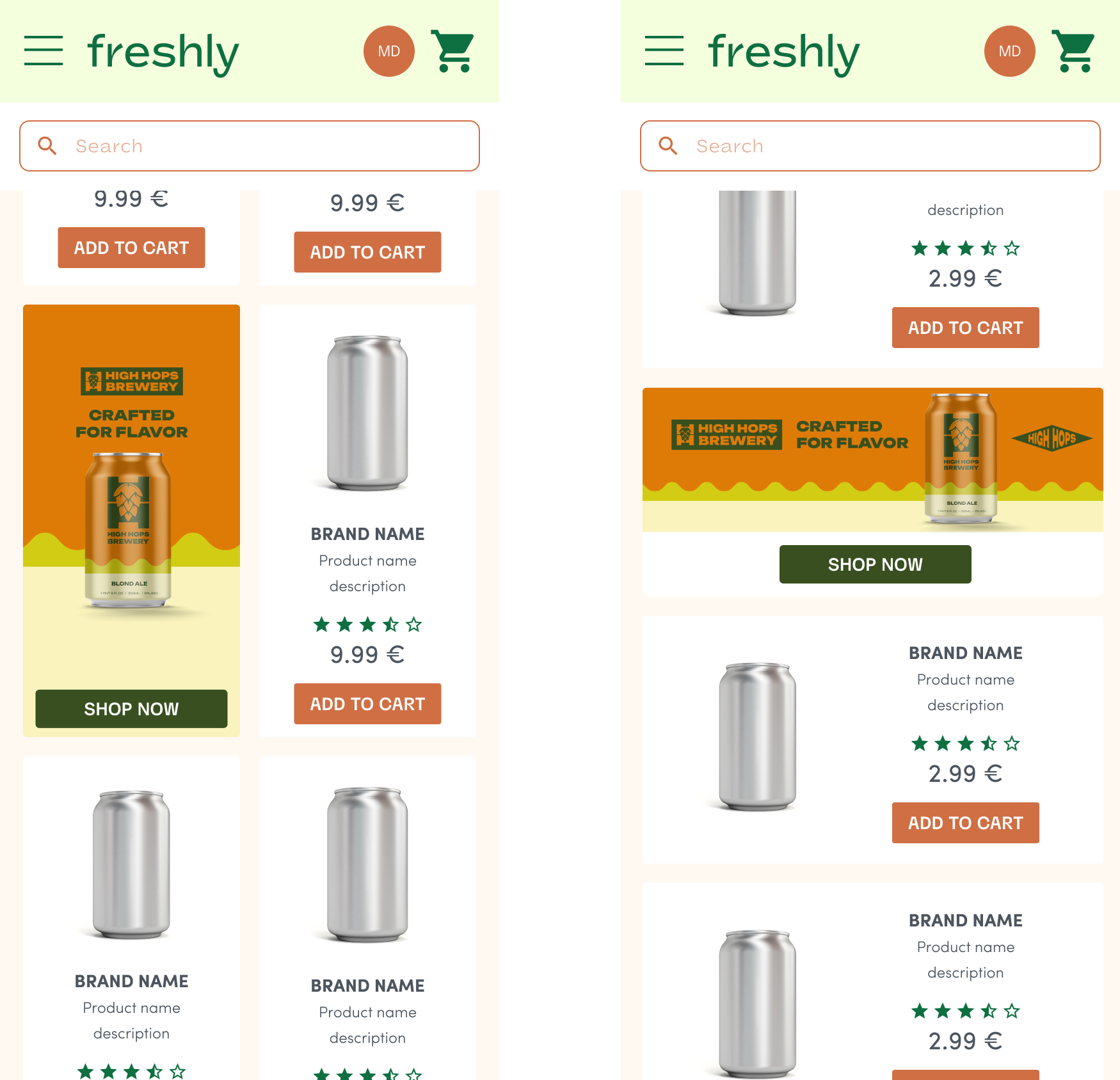 Rendering examples of the Branding Display Grid Solo format (mobile, vertical and horizontal options)