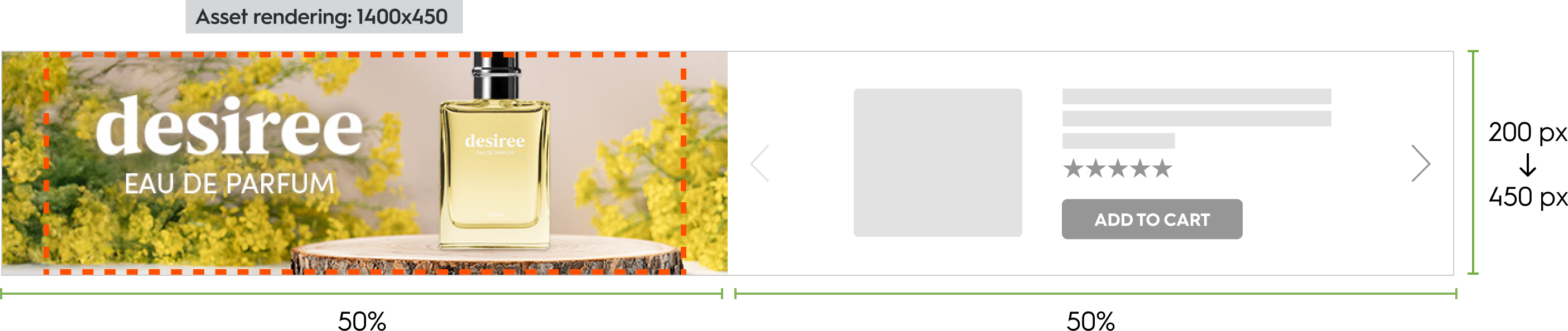Dimensions for a placement width between 1152 px and 2800 px (Commerce Display Spotlight - desktop)