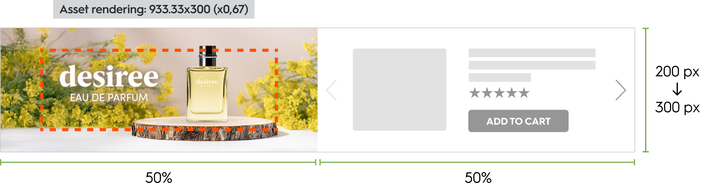 Dimensions for a placement width between 769 px and 1152 px (Commerce Display Spotlight, desktop)