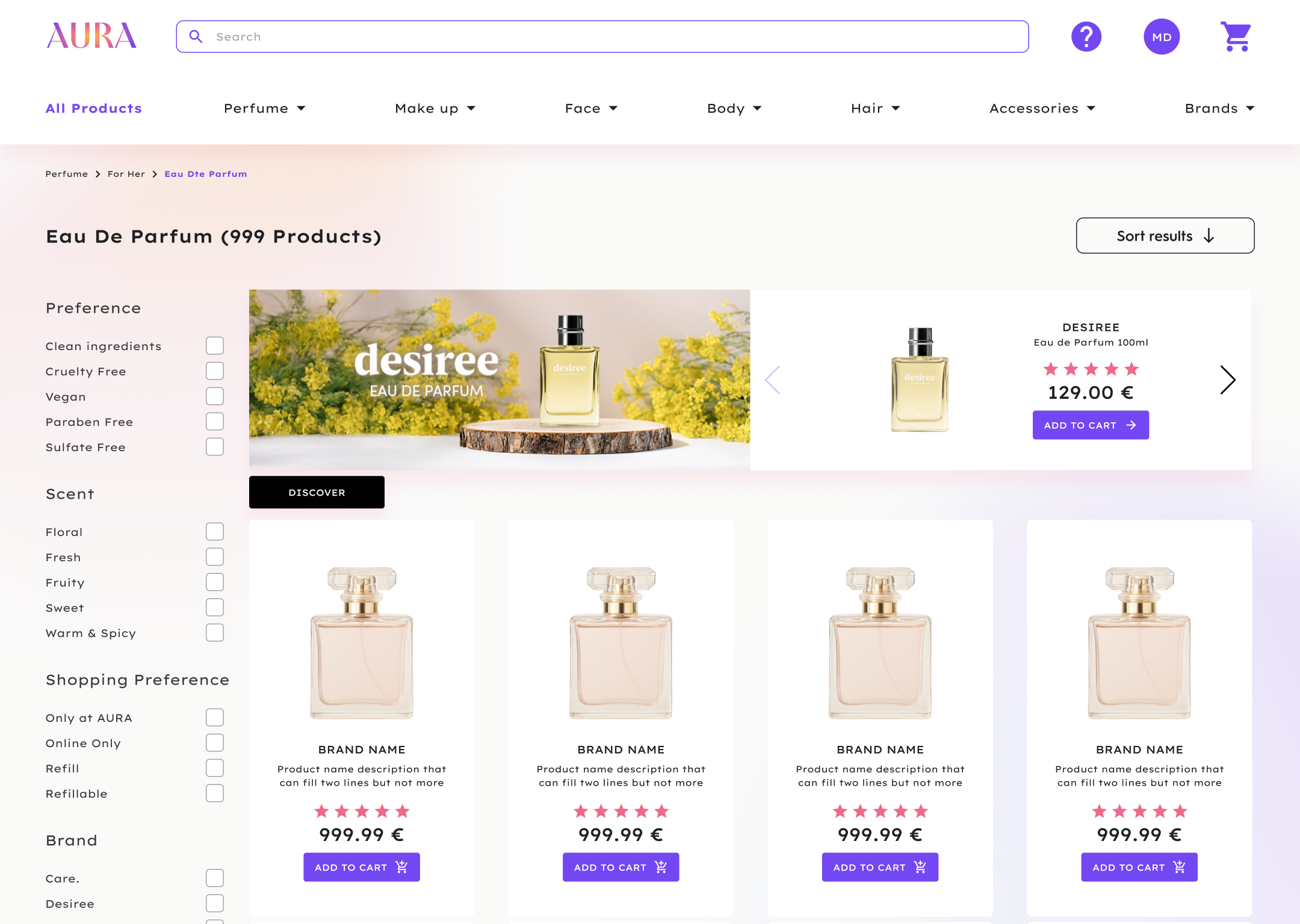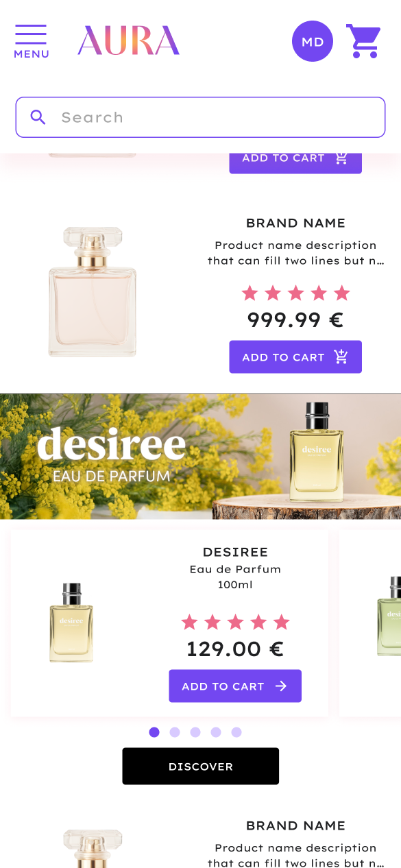 The format must be able to host up to 5 products and support navigation arrows which allow the user to scroll through the products.
