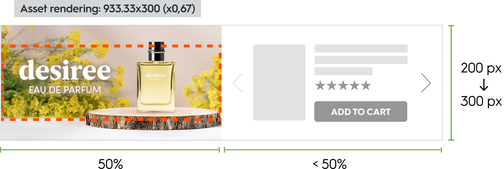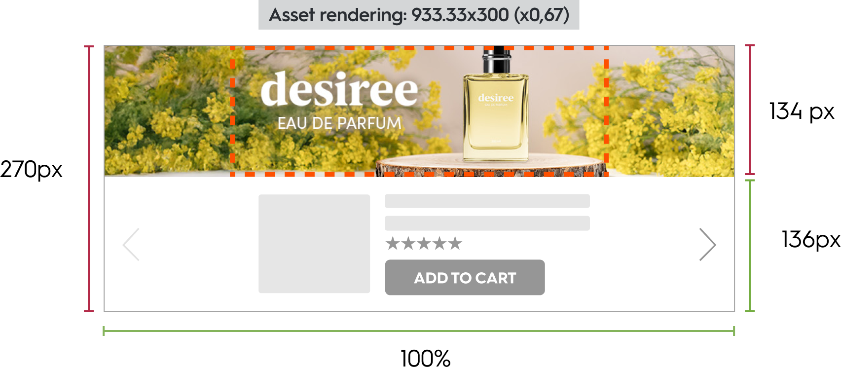 Background and dimensions for the Commerce Display Spotlight format (mobile)