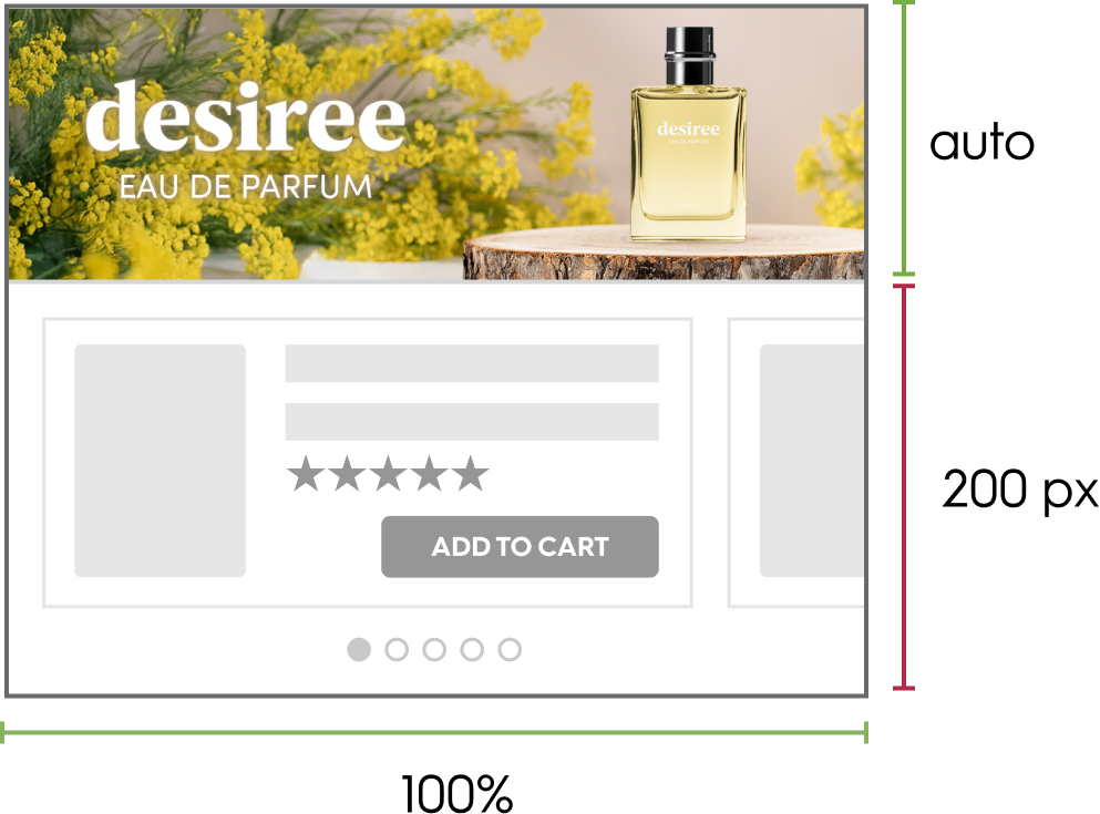 Dimensions for a placement width below 640 px (Commerce Display Spotlight, mobile).